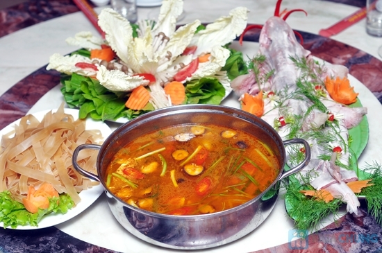 + Nguyên liệu: Cá mập, sả, nghệ, tỏi, me, măng chua, rau muống, rau om, rau quế, hành tím, ớt, đường, muối, bột ngọt.